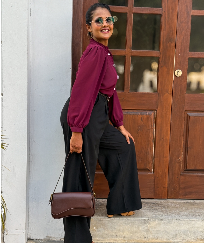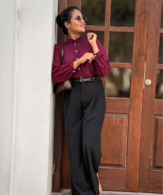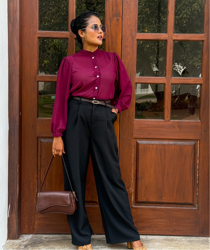 This blouse is a study in quiet luxury—where precision tailoring meets a softly fluid silhouette. Designed for the woman who moves with intention, it captures the essence of old money elegance: never loud, always unforgettable.