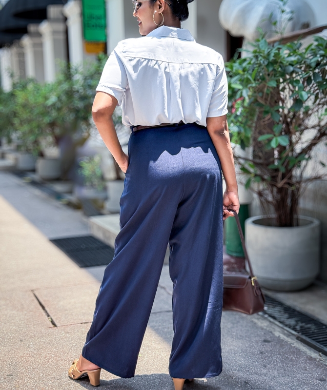 Designed with a high-waisted silhouette and fluid wide-leg structure, these trousers embody quiet power and effortless sophistication. Inspired by the old money aesthetic, they offer a perfect balance of structure and movement, creating a look that is both polished and relaxed.