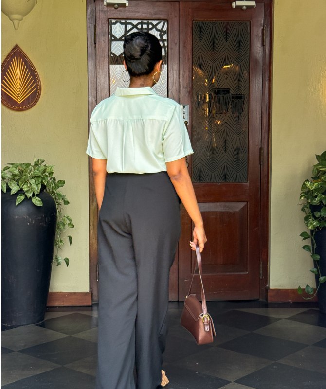 Refined simplicity meets everyday comfort in this elegant mint green blouse, thoughtfully designed for the modern working woman. Crafted from a lightweight, breathable fabric, it offers all-day ease while maintaining a polished, structured look.